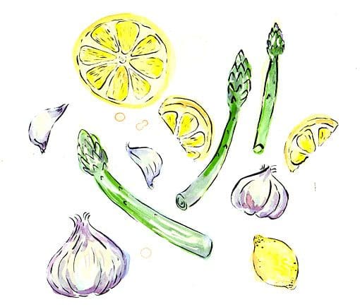 After quite a lot of time spent staring glassy eyed into fridge thinking with increasing despair “what on earth am I going to eat?!” noodles swooped in and saved my life, much like Batman but only more likely to soften in water. Remembering my almost complete reliance on homemade Pot Noodles at university, I bubbled up a vegetable stock and Chinese five spice broth with onion, mushrooms, pepper and peas, splashed in soy sauce and lime juice and added nests of fine egg noodles for the last 2 minutes of boiling. It had taken half an hour and was warming in its tastiness. Heartened by this victory for palatability, I mismatched various recipes together in the manner of a child making a mud pie and created a vegetable lasagne, with tomato sauce wrapped around chunks of a fat, purple aubergine and my first ever béchamel sauce, achieved with the guidance and expertise of my mother. Another lovely thing was cooked by my boyfriend, haloumi, asparagus and potatoes all roasted together with whole cloves of garlic and lemon juice, confirming to me that haloumi may well be the only food that is both squeaky and delicious.