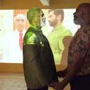 On the way out, I bring up how in the script, one of the rapists has his throat slit halal style. Is this about the need to treat such men like animals? “It’s the product of a system where power gets passed down”, Al Maria explains. “The government rapes the men, and they rape the women.”