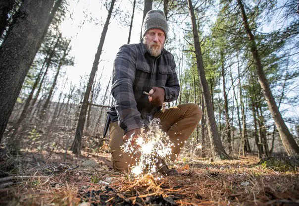 Fire is our best friend in the wild. We need it to boil water, cook food, dry our clothes, keep ourselves warm, repel wild animals, give signals, and mend mentally. Your basic wild survival kit should include lighter, waterproof matches, or a flint & striker set. If you don’t have any of these, use your glasses’ lens or a bottle of water with a convex curvature to focus down the sun’s rays. Finally, you can always make a bow drill to use friction to your benefit.