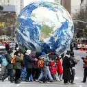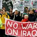 The growing confidence of the anti-war movement builds with the drum-roll of war. People walking, dancing, arm in arm in protest. One city after another lights up on a map indicating the incredible domino effect of calls for Bush and Blair to stop the pending military action in Iraq. Cries of “not in our name” spread across the world.
