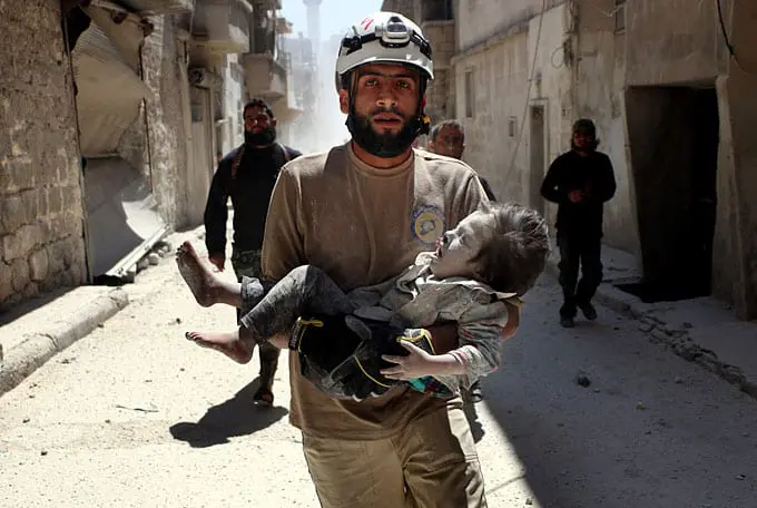 This is a Ahmad, a White Helmets volunteer, rescuing his nephew from one of the attacks in Idlib. After this picture was taken he went back to try and rescue his brother and his sister-in-law: