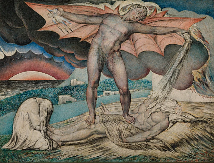 Not all of Blake’s visions are dark. His fairy-filled Oberon, Titania and Puck shows a softer, enchanted side of fantasy, while his religious works — from tormented visions of Job to grief-stricken biblical parents — twist familiar stories into something raw and personal. Blake didn’t illustrate scripture; he rewrote it.