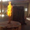 We stop at another carving of a woman made from sandy coloured maple wood. Her back is smoothed to an almost porcelain like finish but her front and face is finely shredded into swirling patterns. These are the curly bits that Aron was referring to which he creates using a robotic lathe linked to the 3D computer. The effect is mesmerising and beautifully encapsulates both the fragility and durability of the human spirit.